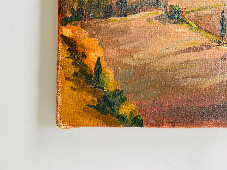 There is nothing more beautiful than a summer sunset in the hills of Tuscany. This painting shows typical wear of its age, but that's what we love about it.