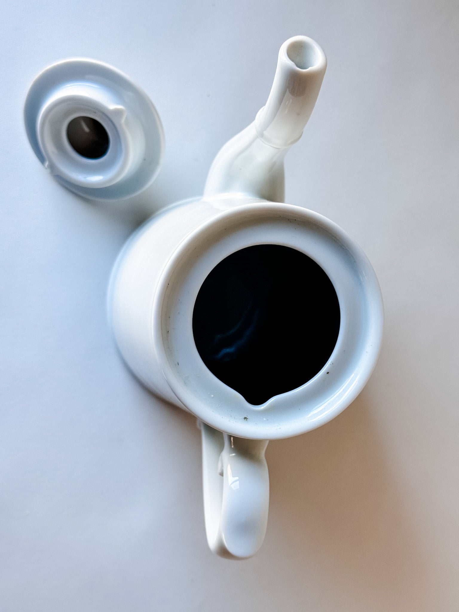 The classic white porcelain designs always reminds me of drinking coffee at a street cafe in Paris.