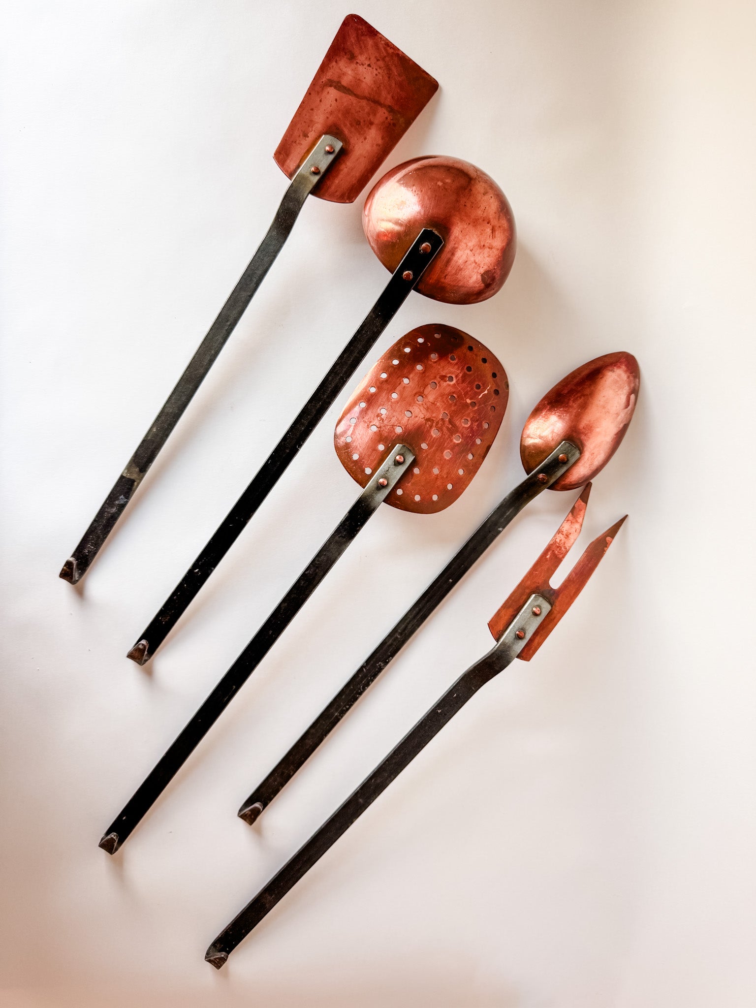 Rare Complete Set of 5 Copper Cooking Utensils