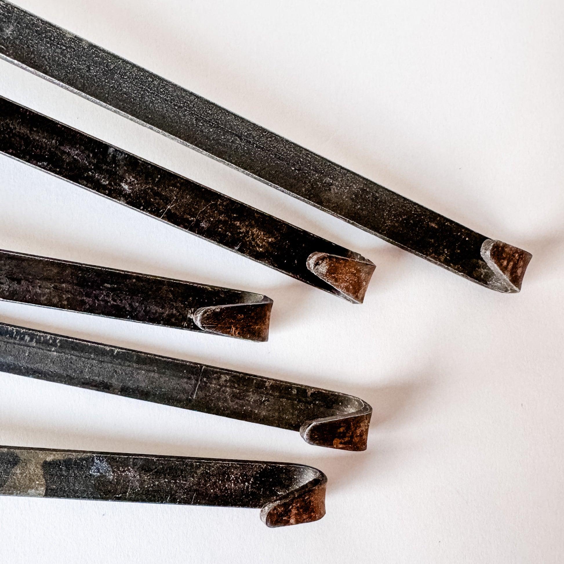- Iron handles with hooks on the end and copper bases
